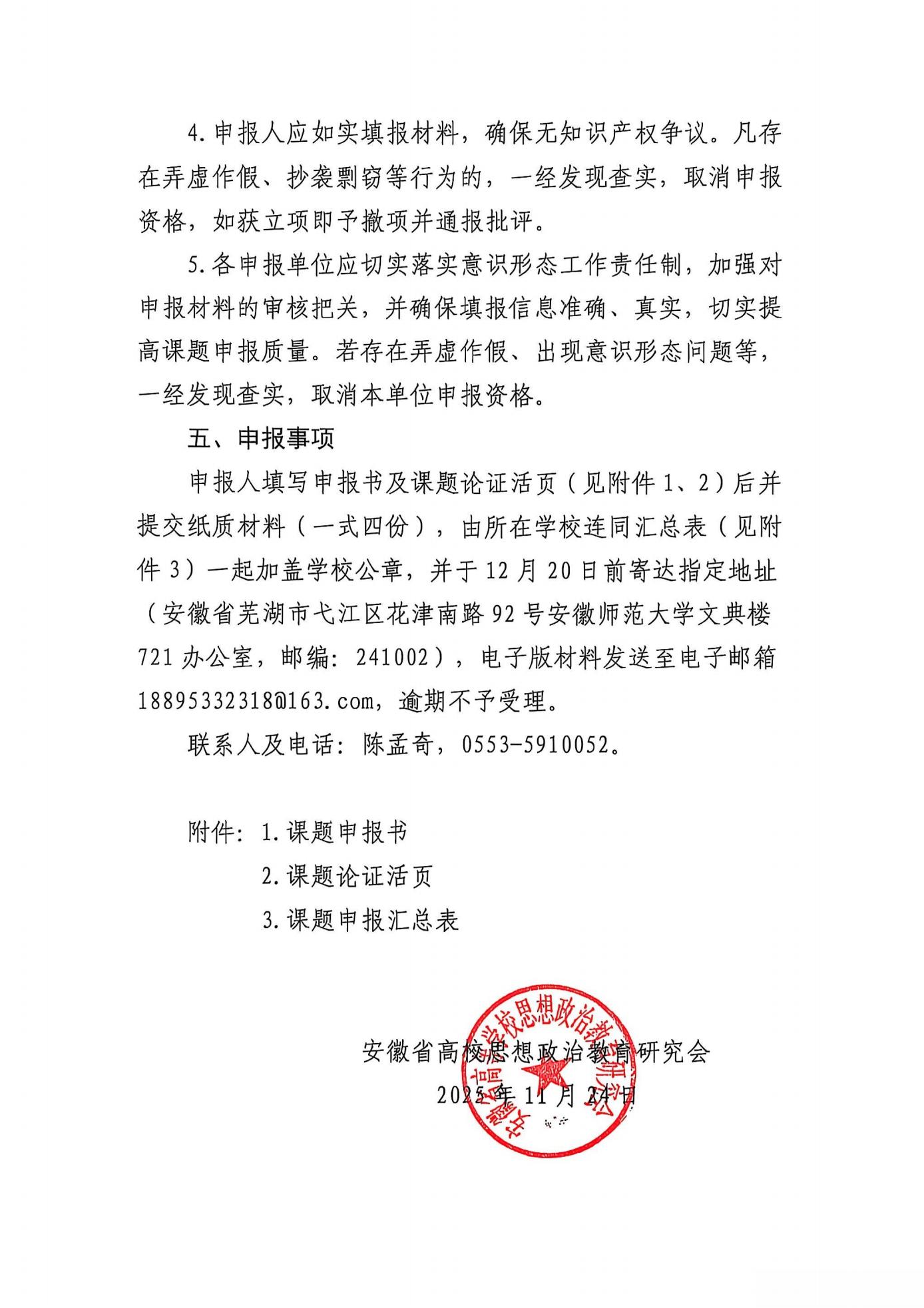 关于开展安徽省高等学校思想政治教育研究会2025年度高校思想政治教育研究专项课题申报工作的通知