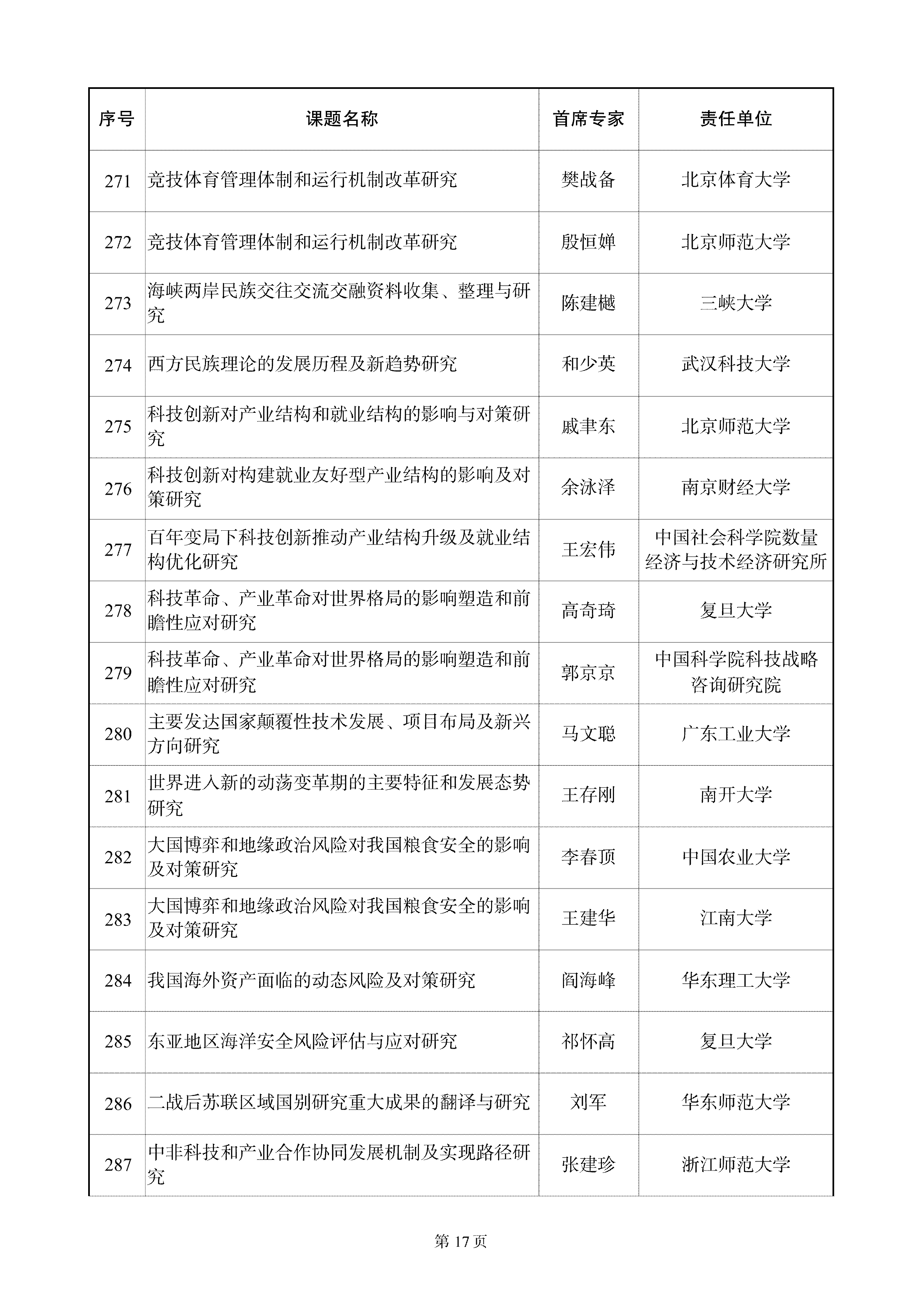 根据《国家社会科学基金管理办法》的有关规定,现将2025年国家社科基金重大项目立项名单予以公示。公示时间为2025年12月6日至12日。公示期内,如有异议,请以书面方式向我办项目管理处反映,并提供必要的证据材料,以便核实查证。提出异议者须提供本人真实姓名、工作单位、联系电话等有效联系方式(我办将予以严格保密),凡匿名、冒名或超出期限的异议不予受理。