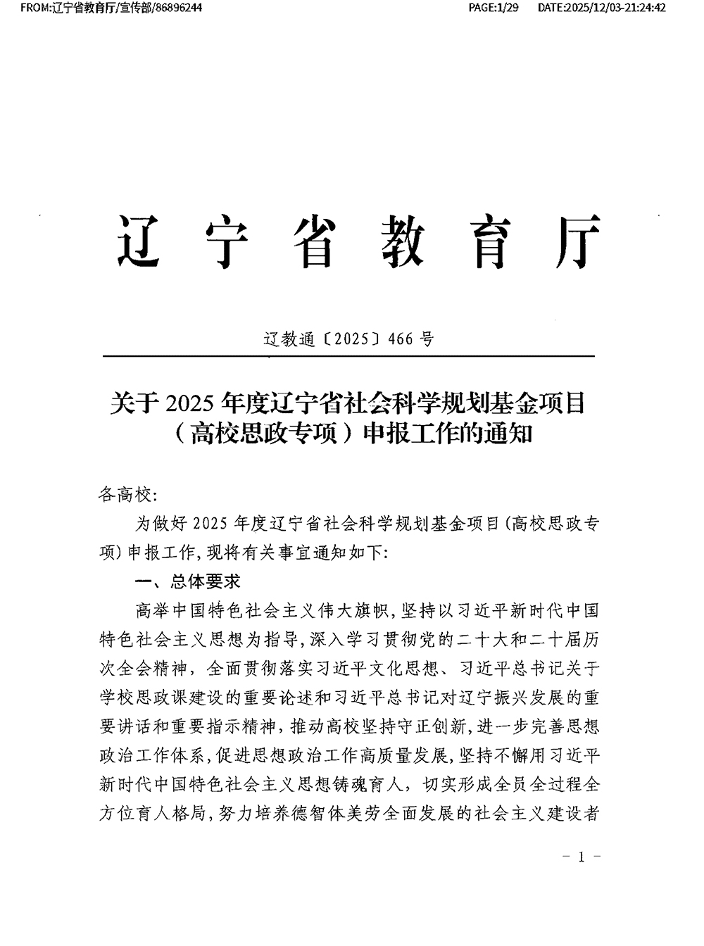 关于2025年度辽宁省社会科学规划基金项目(高校思政专项)申报工作的通知