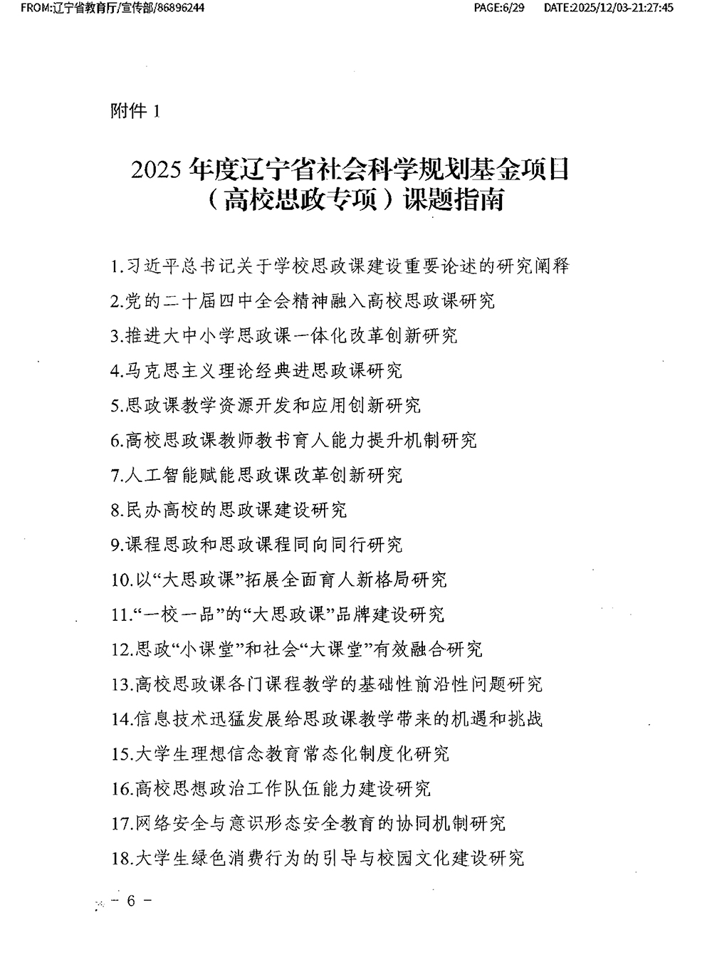 附件1:2025年度辽宁省社会科学规划基金项目(高校思政专项)课题指南.docx