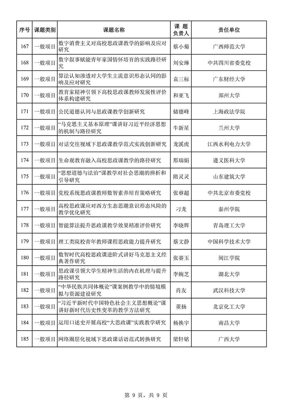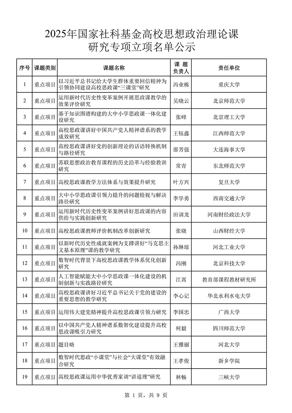2025年国家社科基金高校思想政治理论课研究专项立项名单公示
