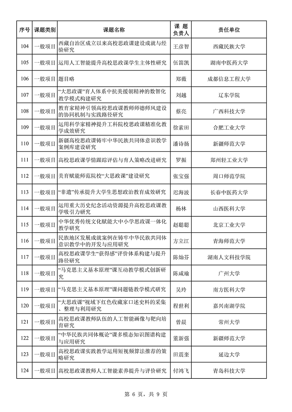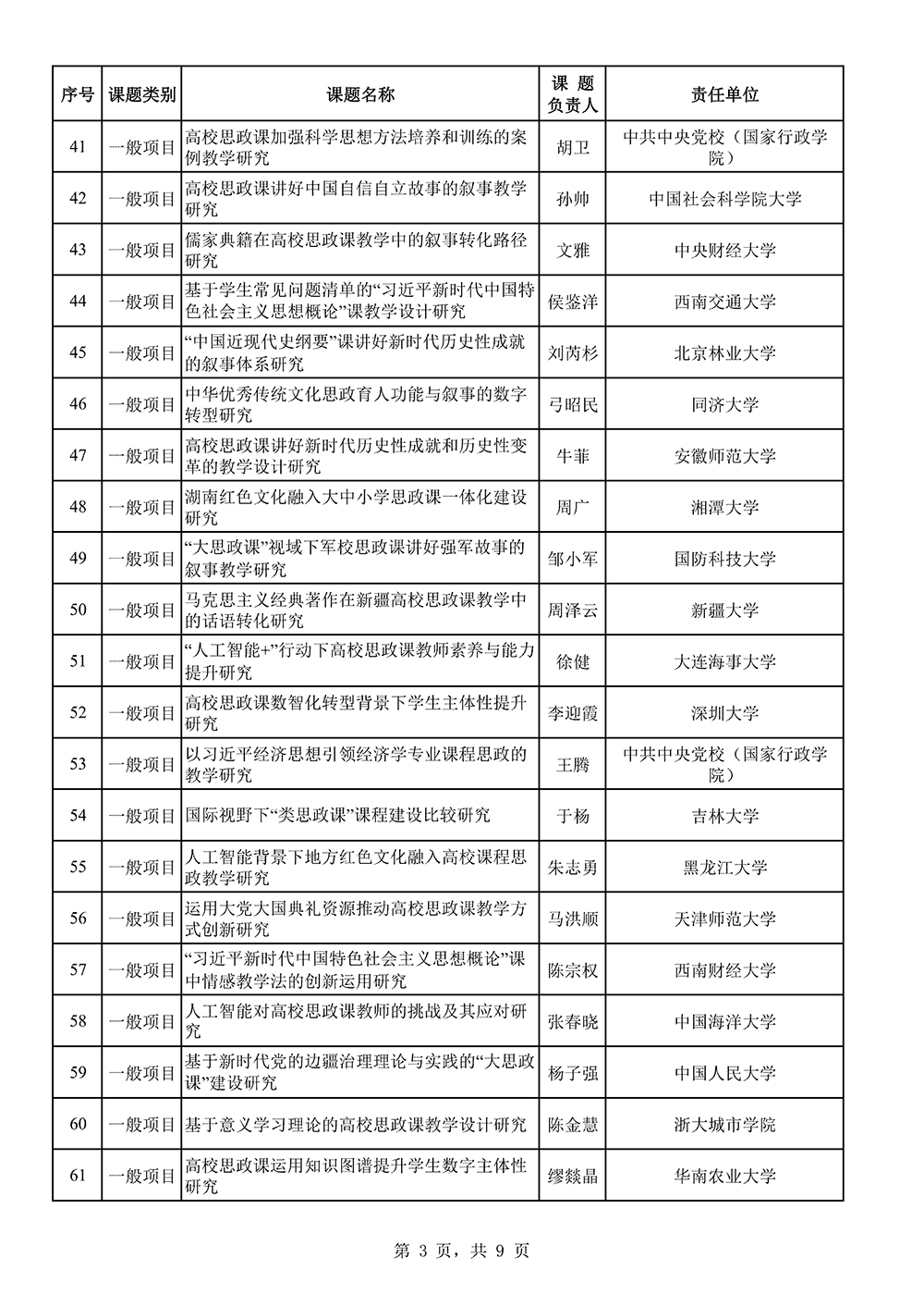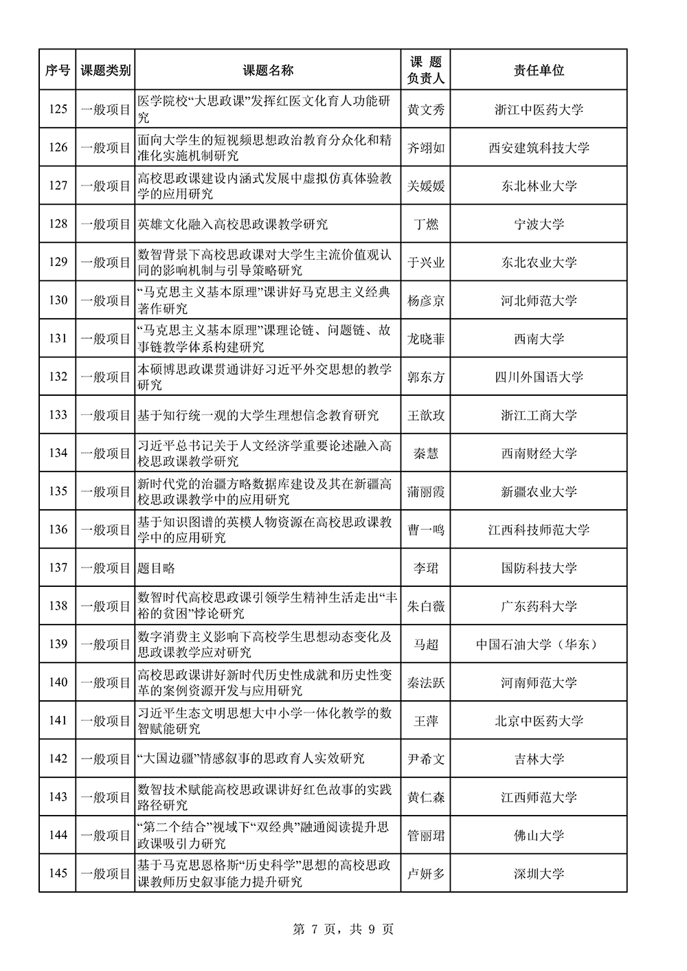 附件:2025年国家社科基金高校思想政治理论课研究专项立项名单公示