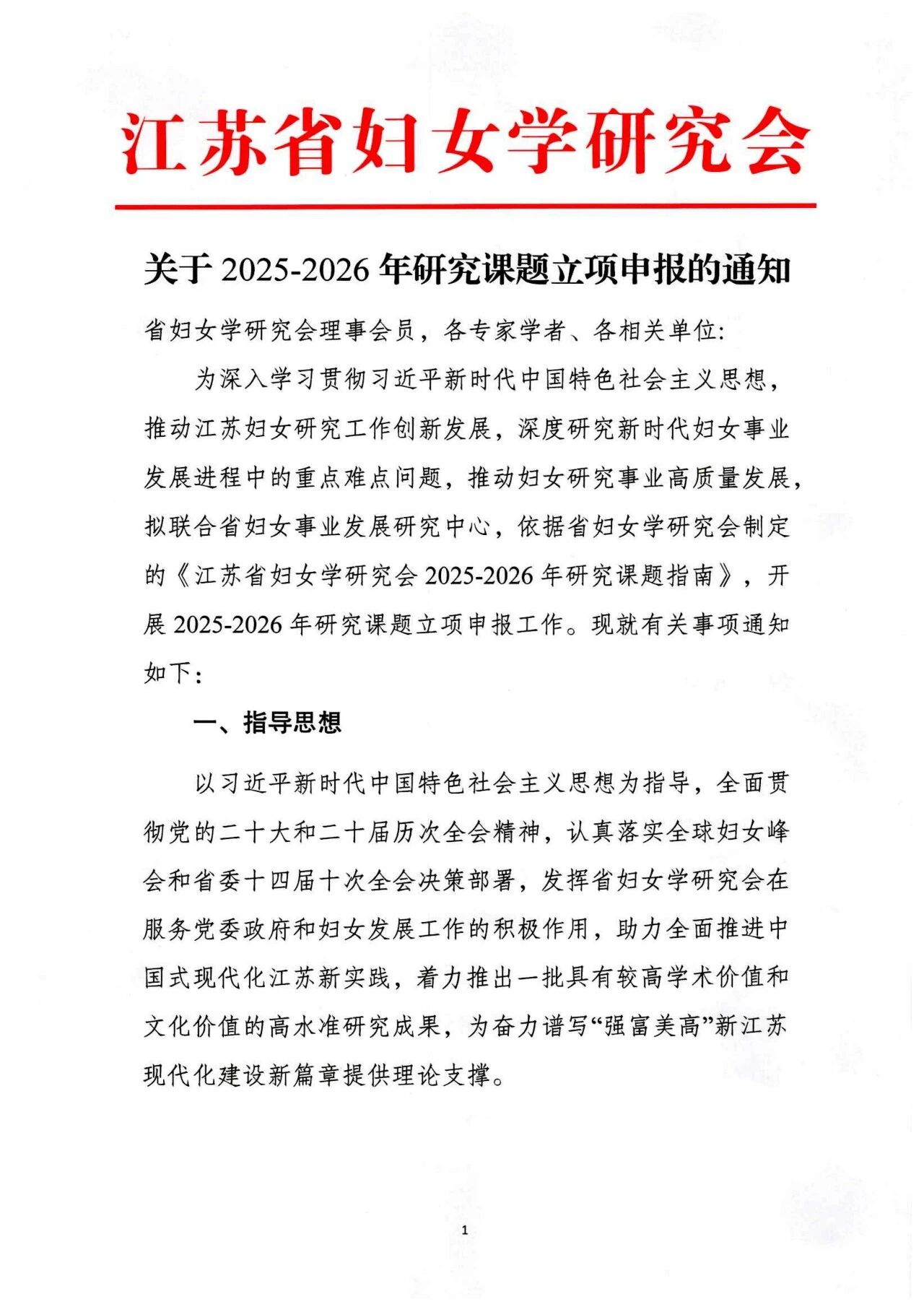江苏省妇女学研究会关于2025-2026年研究课题立项申报的通知