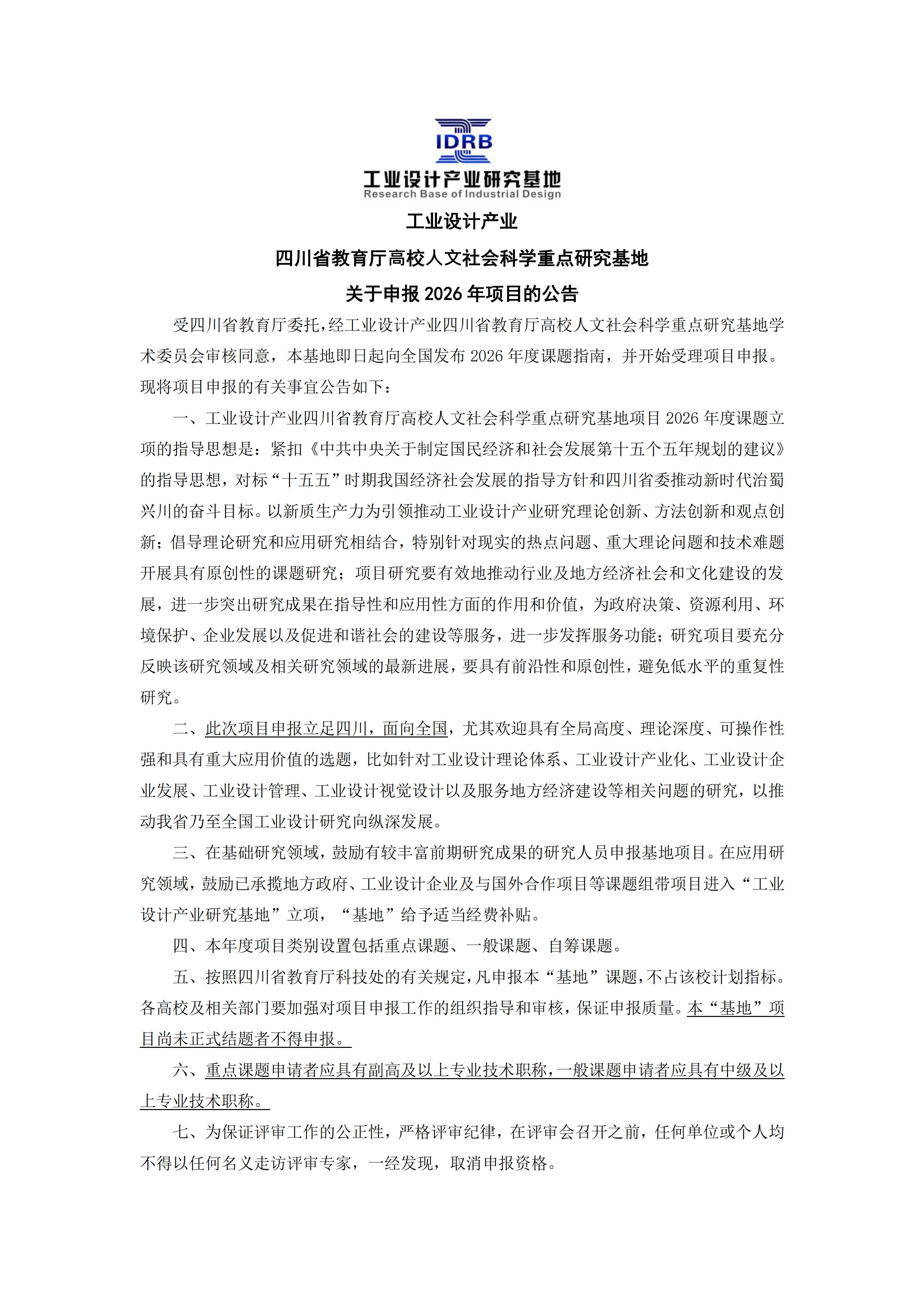面向全国 | 2026年度“工业设计产业研究基地”项目申报与结题公告