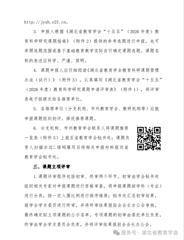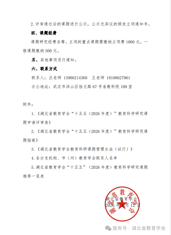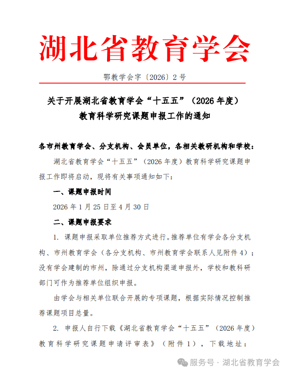 关于开展湖北省教育学会“十五五”(2026年度)教育科学研究课题申报工作的通知