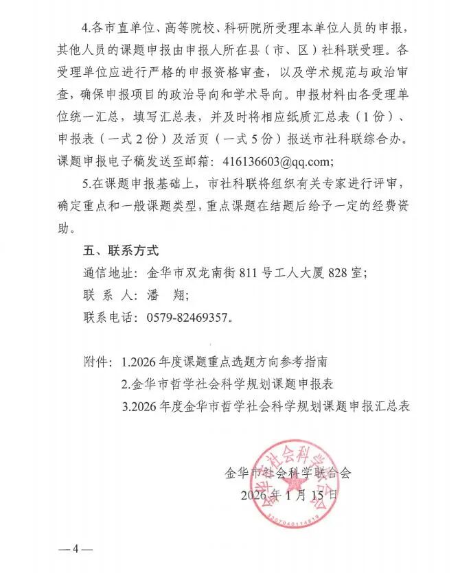 2026年金华市哲学社会科学规划年度课题申报通知
