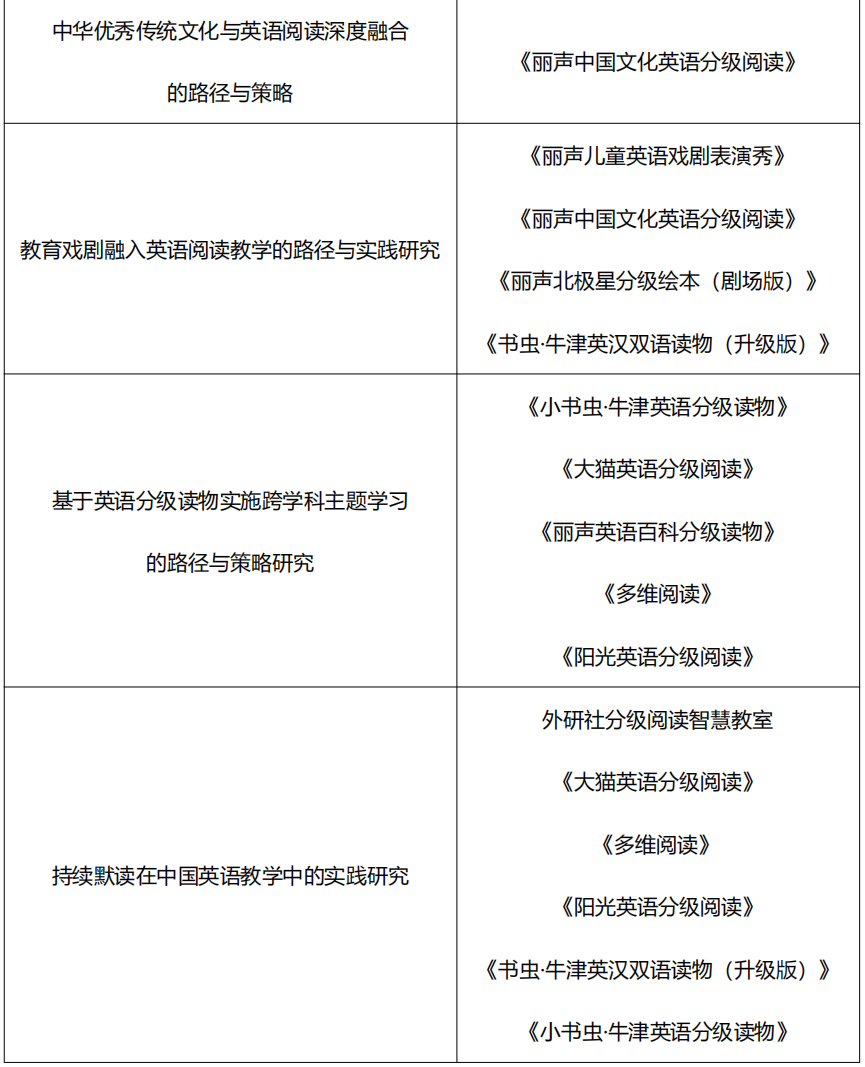 中国英语阅读教育研究院重点课题子课题推荐实验用书