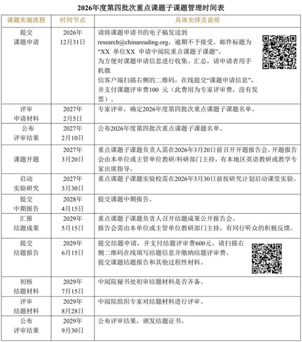 关于中国英语阅读教育研究院2026年度重点课题子课题申报工作的通知