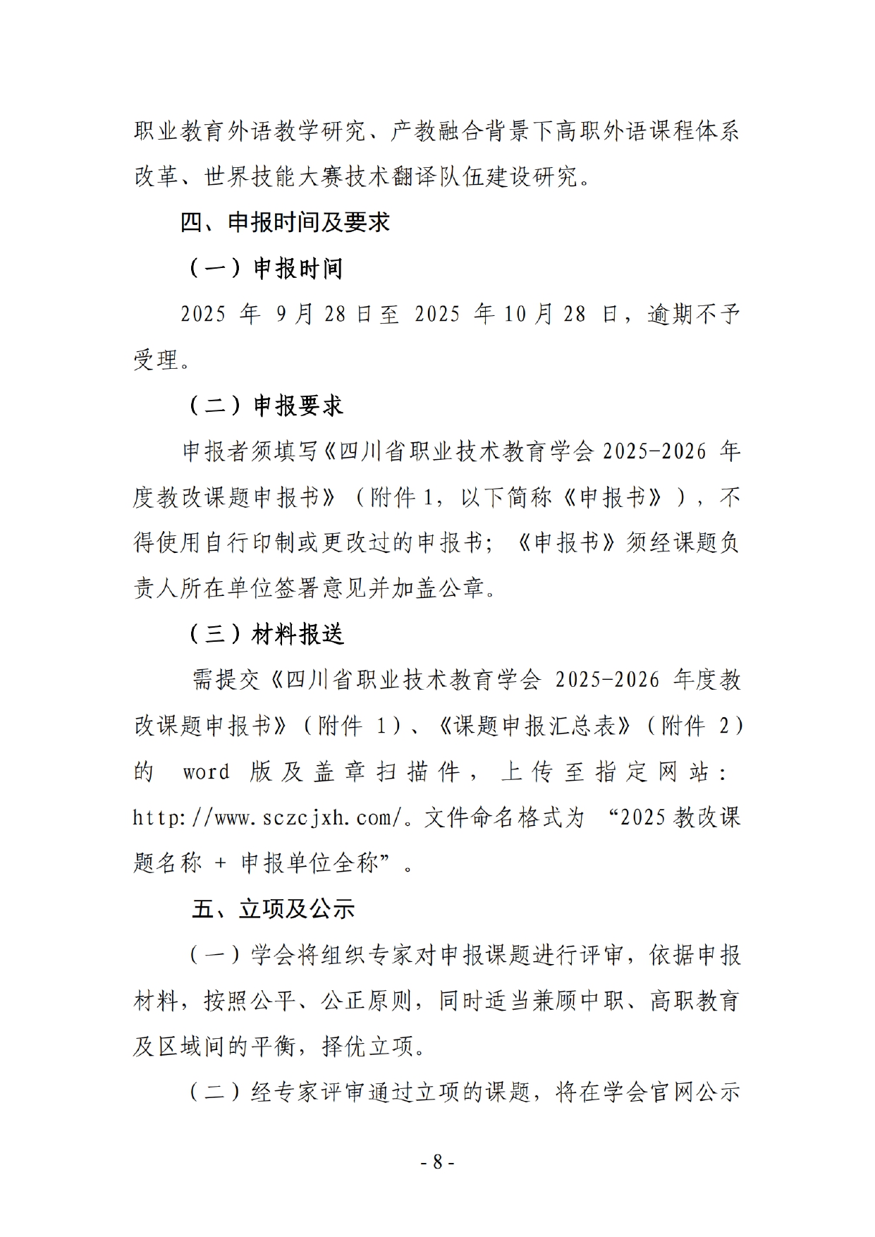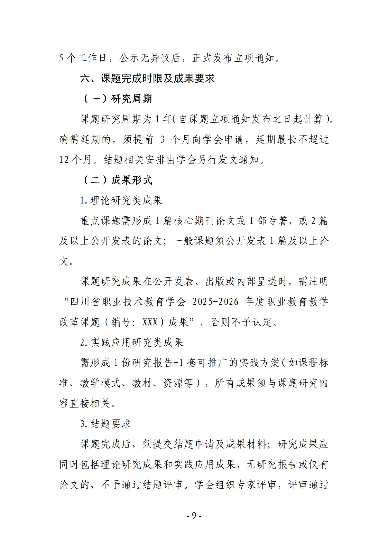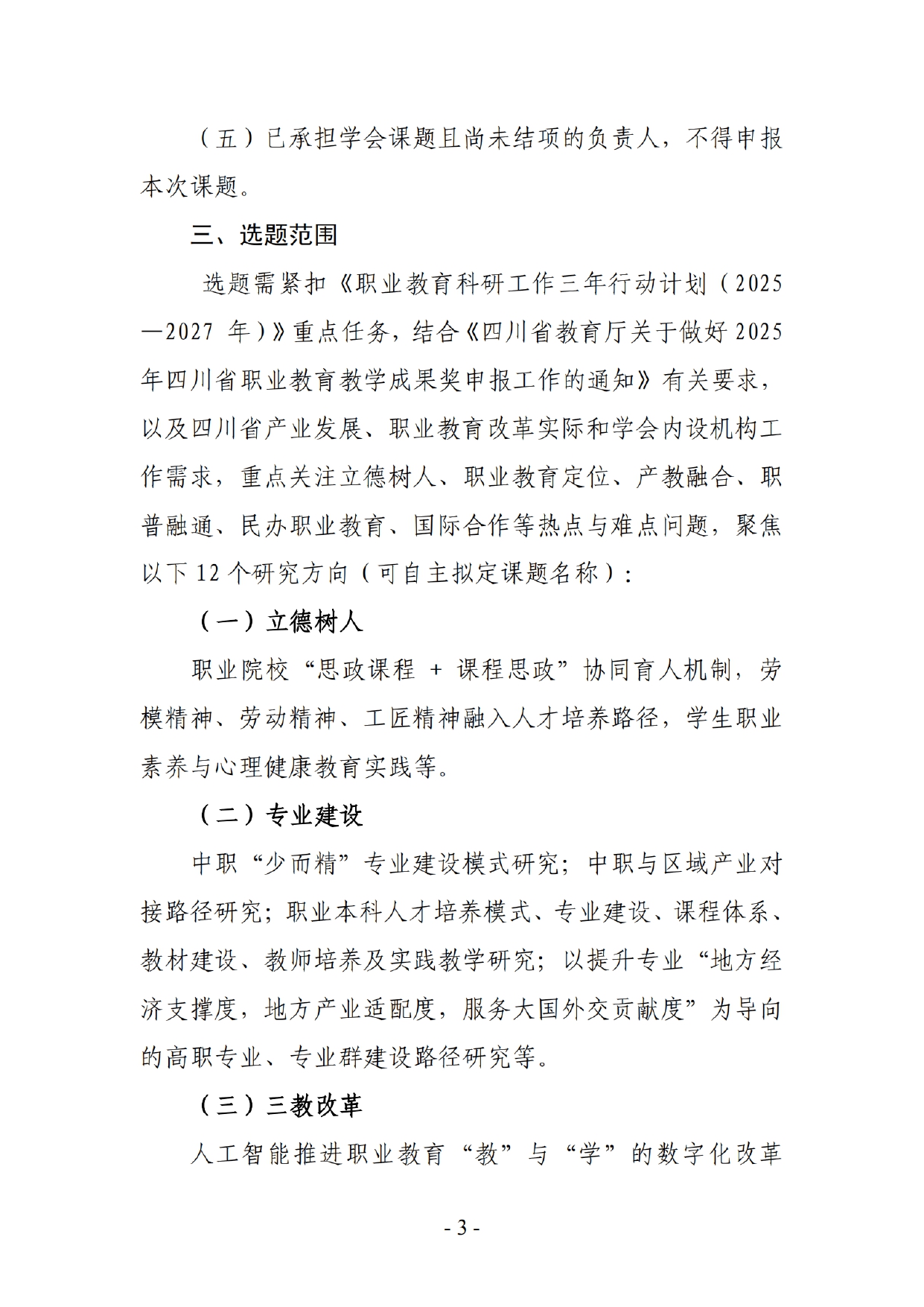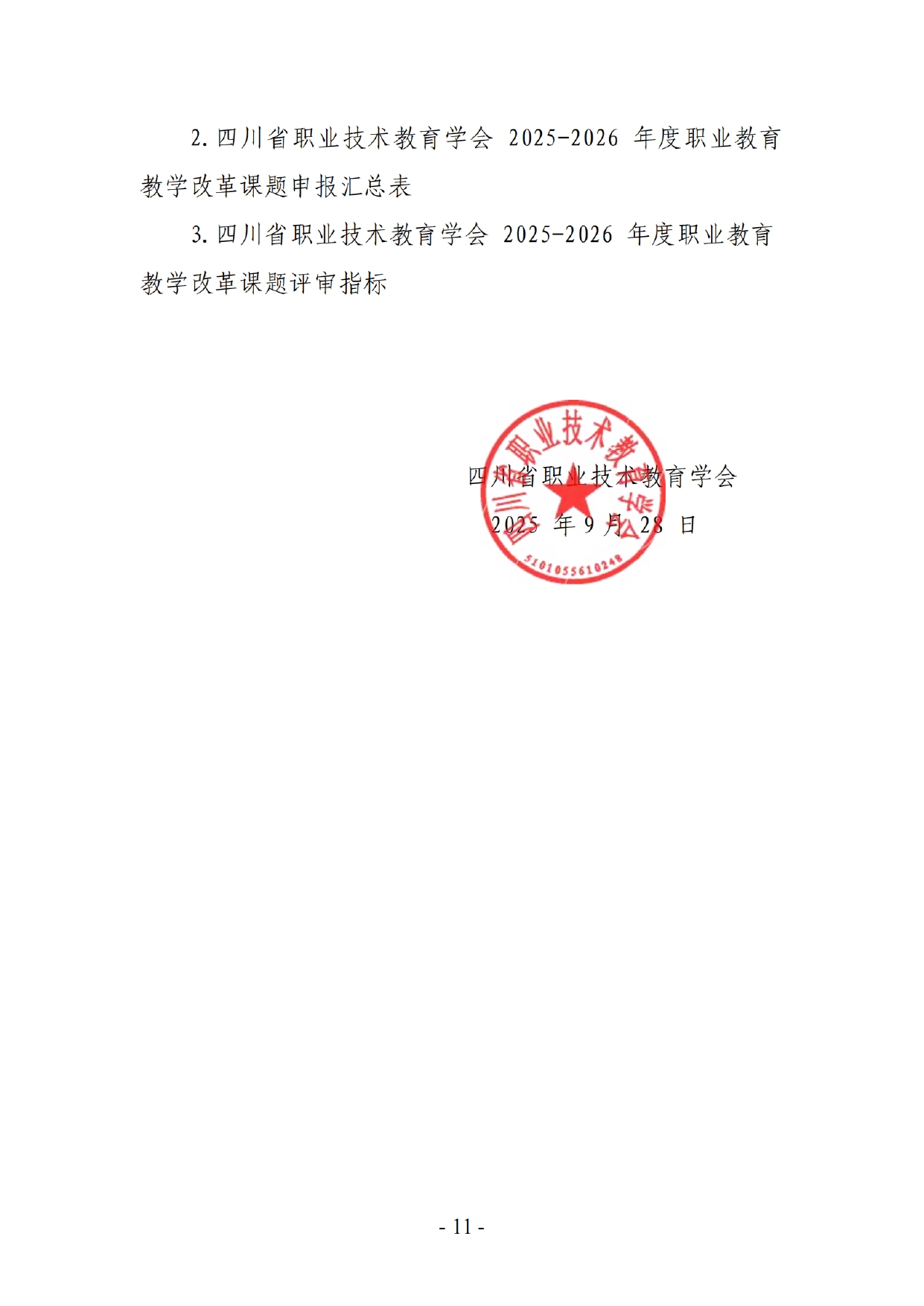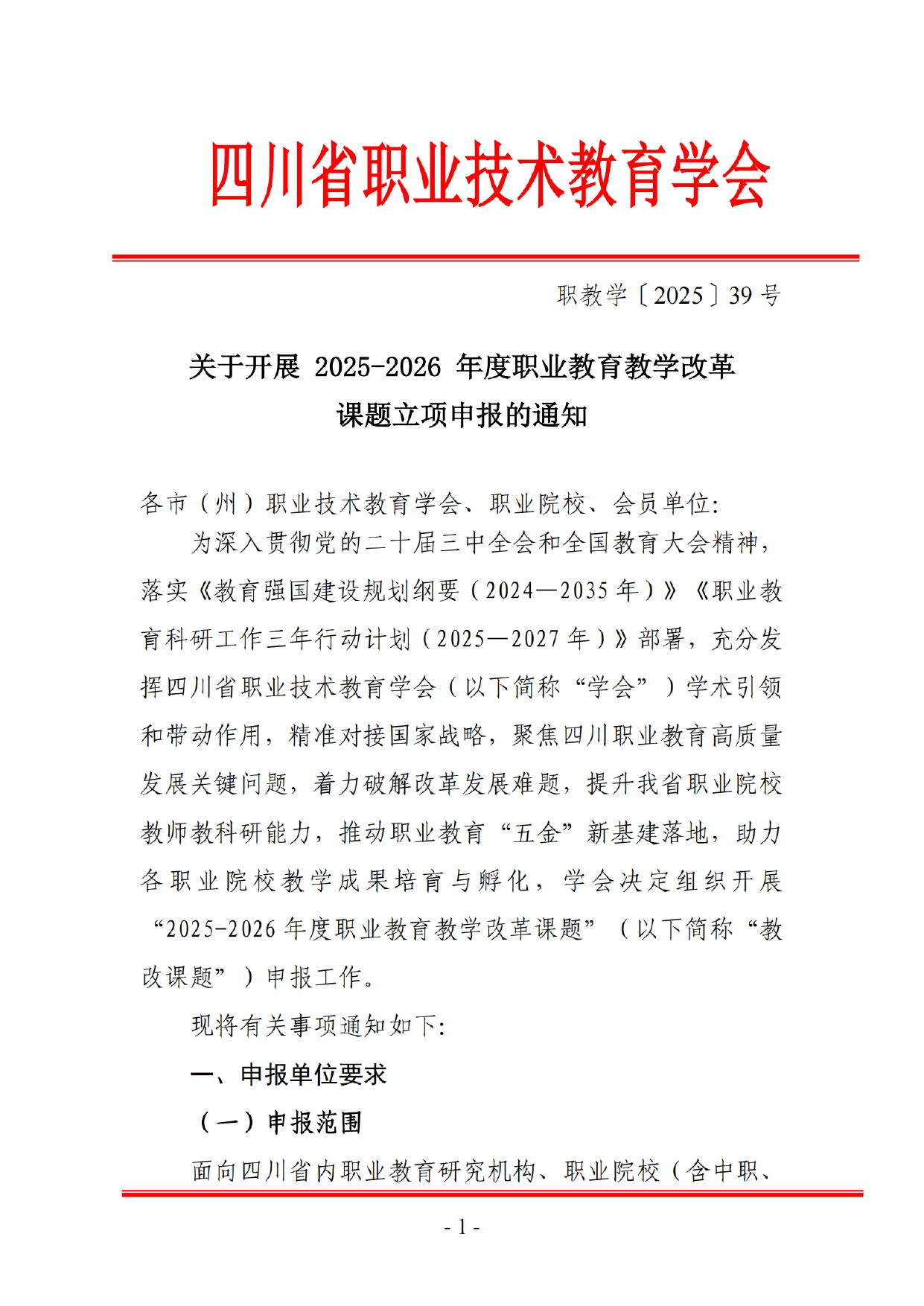 四川省职业技术教育学会关于开展2025-2026年度职业教育教学改革课题立项申报的通知