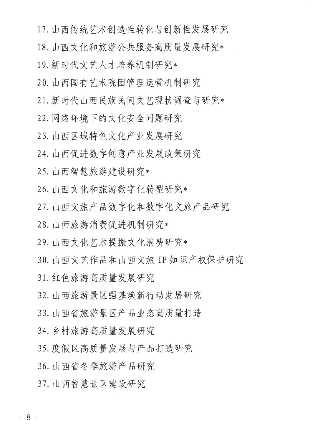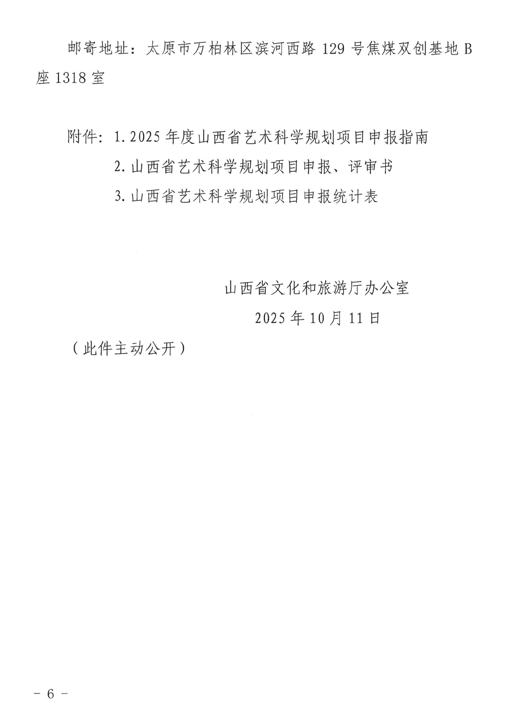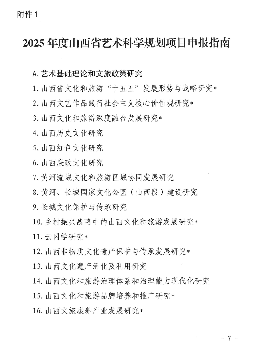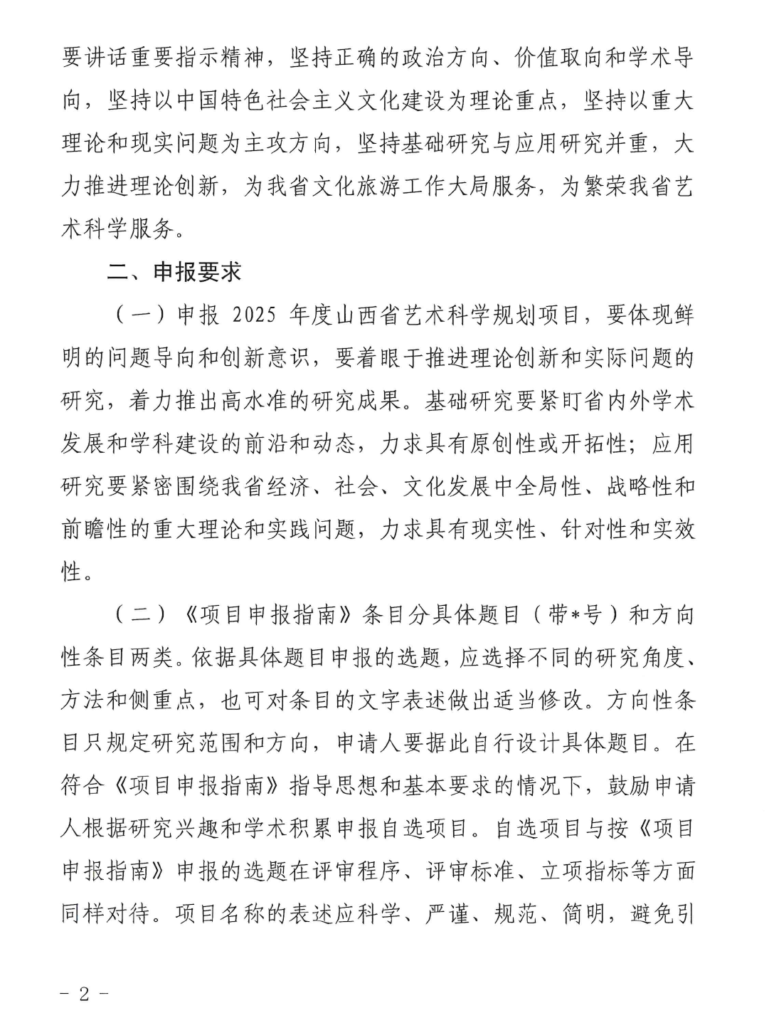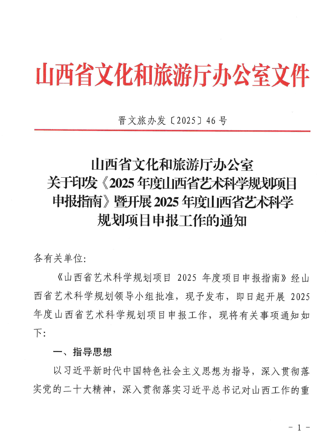 山西省文化和旅游厅办公室关于印发《2025年度山西省艺术科学规划项目申报指南》暨开展2025年度山西省艺术科学规划项目申报工作的通知