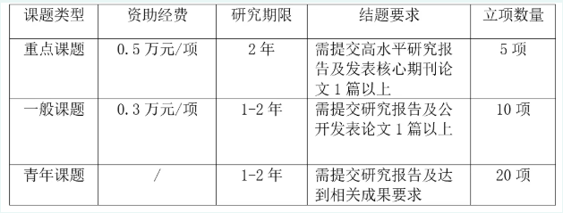 成果形式:结项需提交有分量、有深度、有决策参考价值的研究报告,或高质量学术论文、调研报告、专著等。